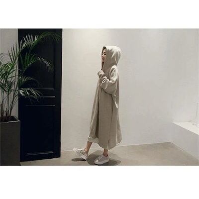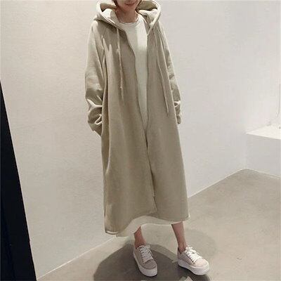 ロングパーカー レディース スウェットワンピース ロングコート 秋冬 ジャージ おしゃれ パーカー 長袖スウェット 裏起毛 フード付き ロング丈 BF風 韓国風 スポーツカジュアル スウェット コート
