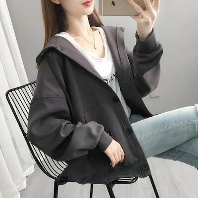パーカー レディース トップス 長袖 ショット丈 フード付き 秋服 大きいサイズ トップス 体型カバー 無地 着痩せ 可愛い ゆったり 定番