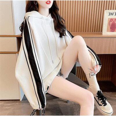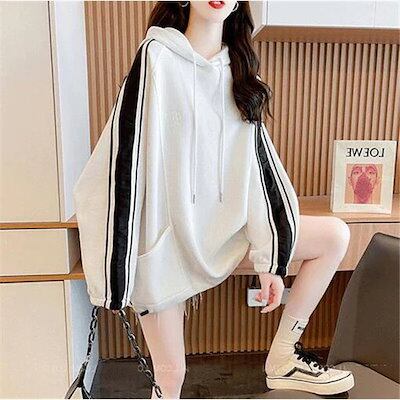 パーカー レディース フード付き 長袖 ロング丈 プルオーバー トレーナー ドロップショルダー ゆったり シンプル カジュアル トップス オシャレ