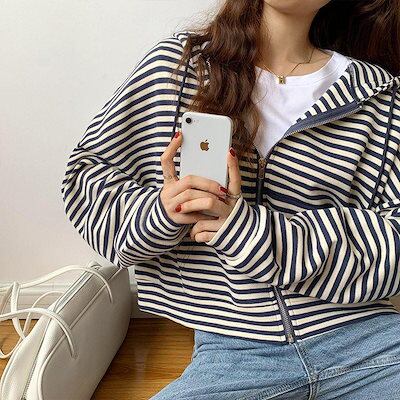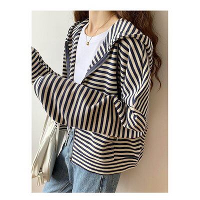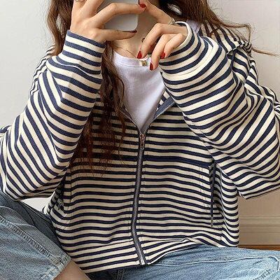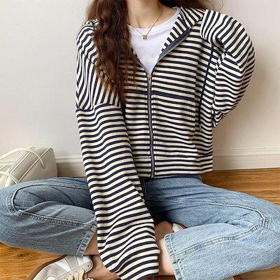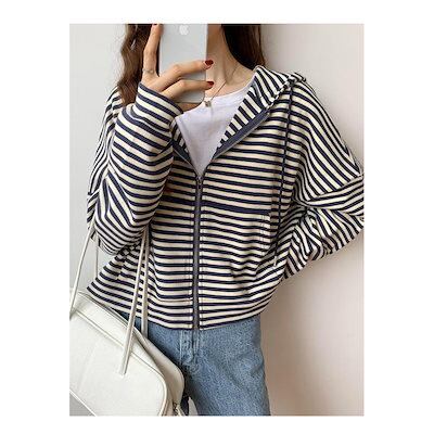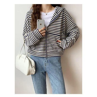 パーカー レディース 長袖ジャケット お出かけ 韓国風 横縞 運動 通勤 ゆったり シンプル 人気急上昇 定番 可愛い おすすめ
