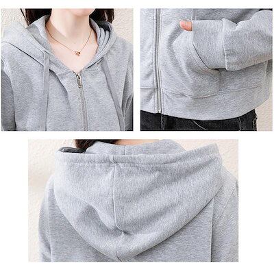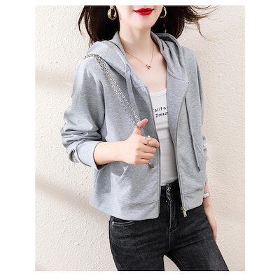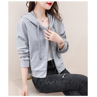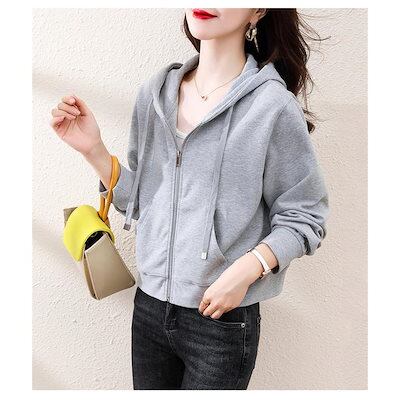 パーカー レディース 長袖ジャケット フード付き アウトドア 韓国風 アウター 無地 カジュアル 秋服 春秋 おしゃれ 着痩せ 短め 通勤