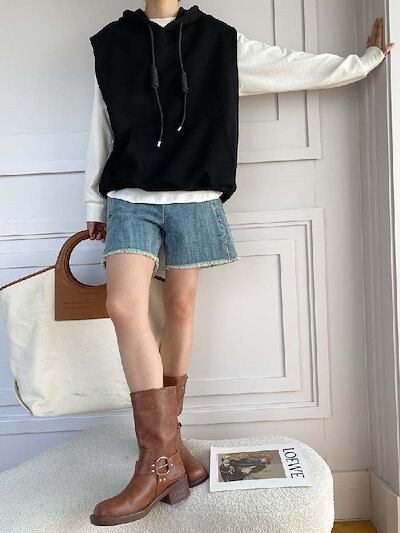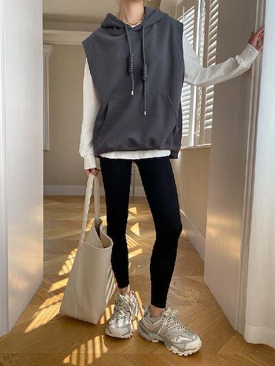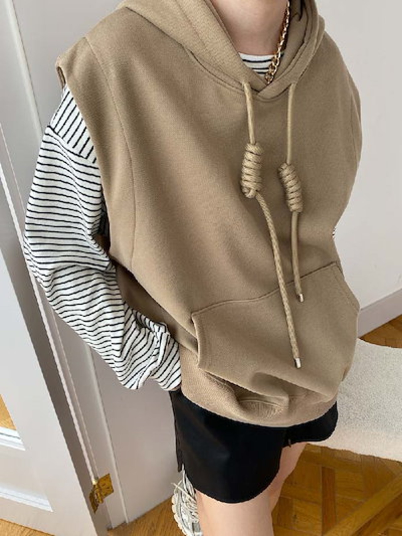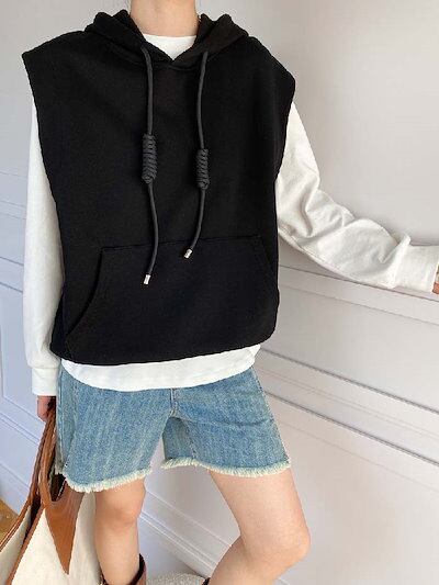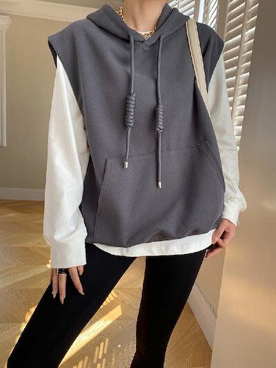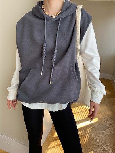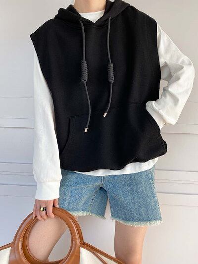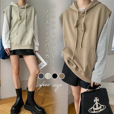 パーカー レディース ノースリーブ ベスト フード付き 重ね着 レイヤード風 春 秋 トレーナー フード付き パーカー 無袖 トップス 無地 シンプル ゆったり カジュアル 大きいサイズ ゆるっと