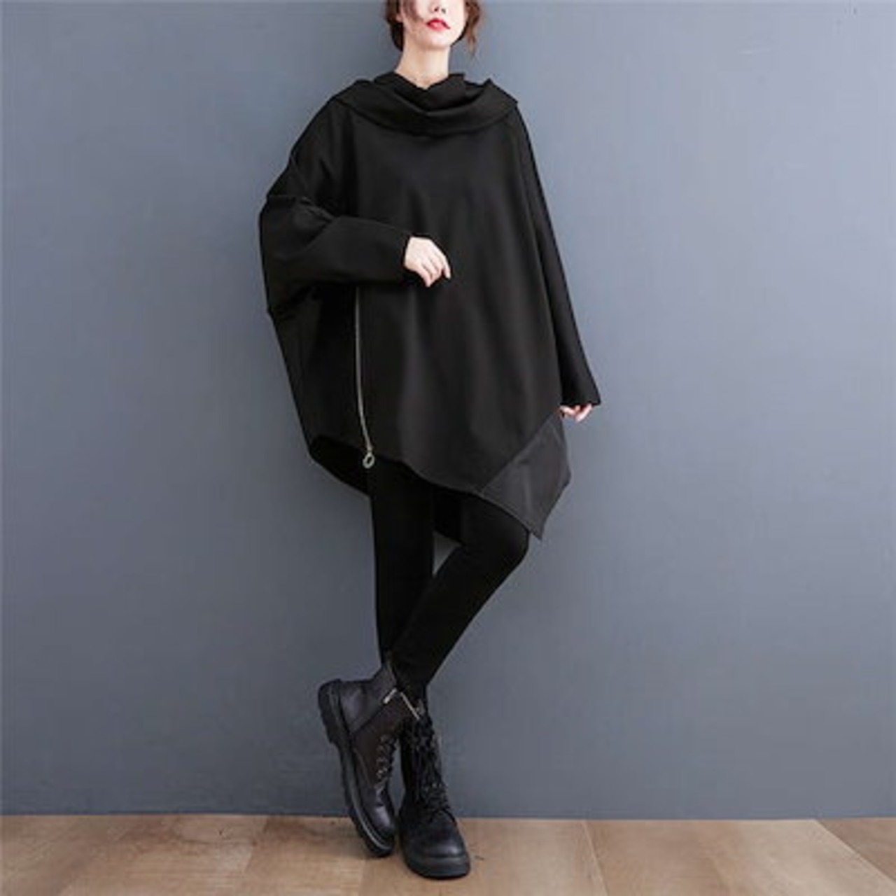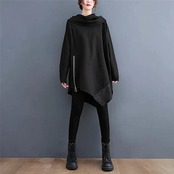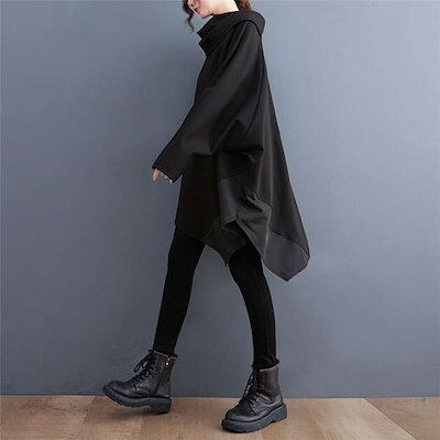 アシンメトリー パーカー レディース 秋冬 パーカーワンピース チュニック 大きめ ロングパーカー トレーナー ビッグパーカー スウェット アシンメトリーパーカ ゆったり ドルマンスリーブ 無地 韓国