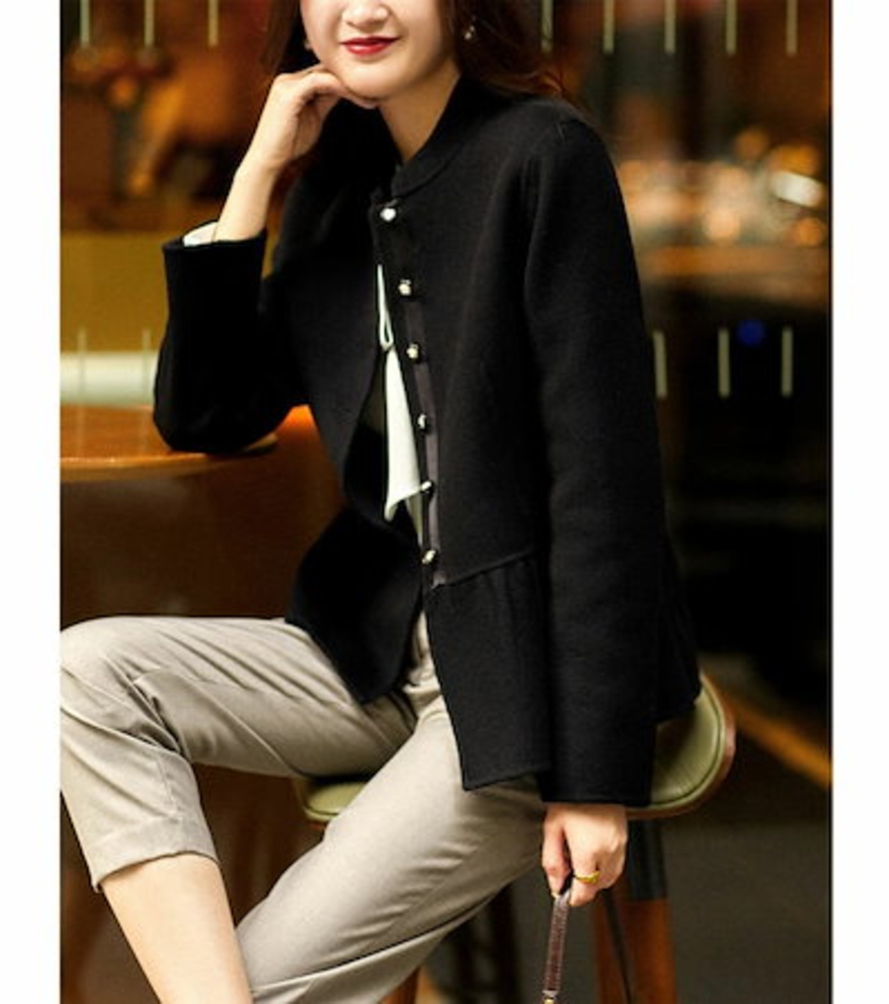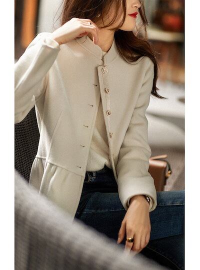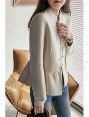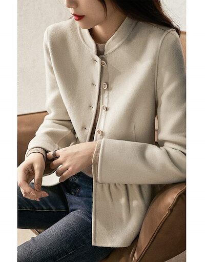 ジャケット ショート丈 レディース コート 長袖 立ち襟 ショートコート ラシャ 前開き トップス パーカー 無地 体型カバー ゆったり 秋コート オフィス オシャレ ショートジャケット アウター シ