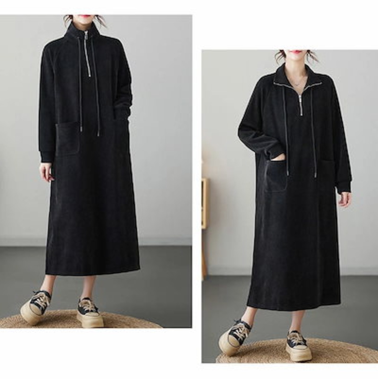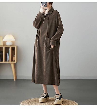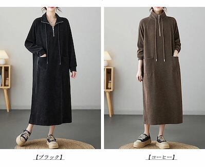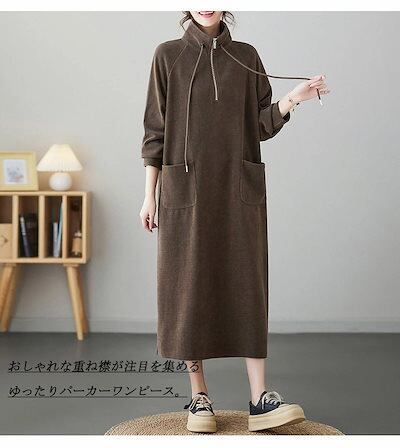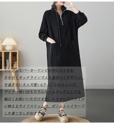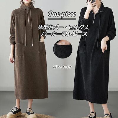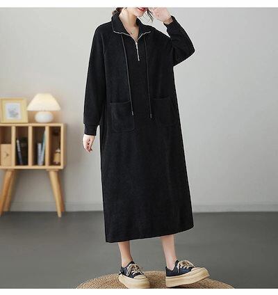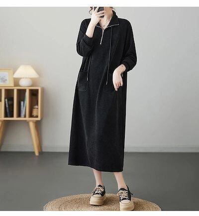ロングワンピース パーカーワンピース 無地 レディース ワンピース 秋冬 ロング丈 長袖 大きいサイズ 体型カバー ゆったり 黒ワンピース 長袖ワンピース 秋 カジュアル チュニック チュニックワンピ