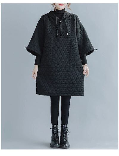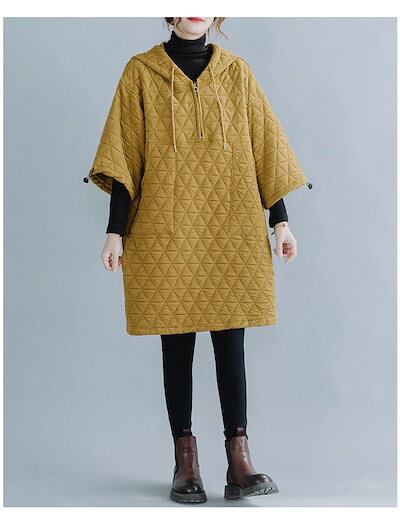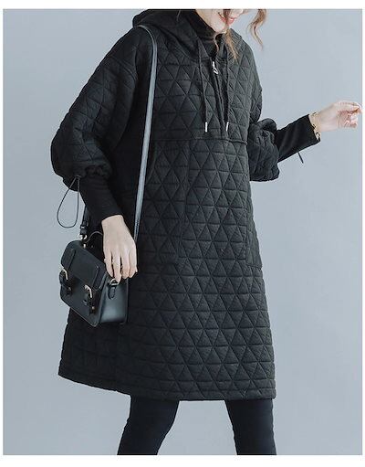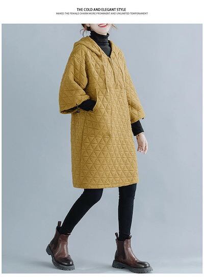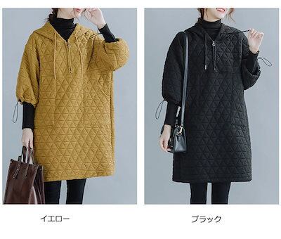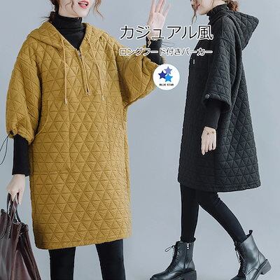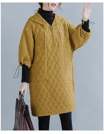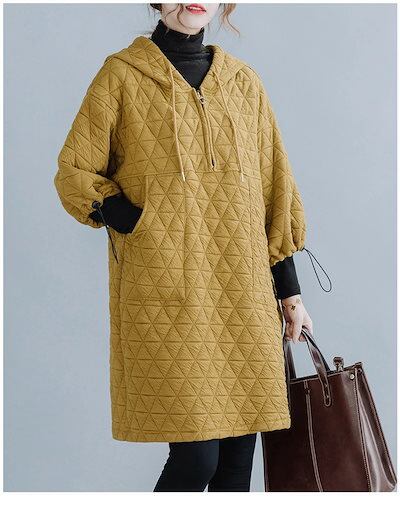 パーカー ワンピース レディース ロング チュニック パーカーワンピース 無地 フード付き 秋冬 キルティング ロングパーカー 大きいサイズ ゆったり 体型カバー プルオーバー ロング丈 トップス チ