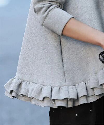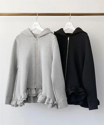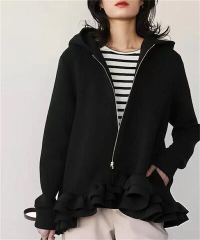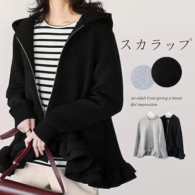 パーカー レディース 秋 アウター ショート丈 トップス 長袖 スカラップ パーカー スウェット風 ジャケット コート フード付きパーカー 無地 カジュアル ゆったり 体型カバー フレア裾 かわいい