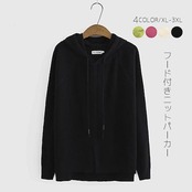 パーカー レディース 秋 冬 長袖 パーカー ニット ニットセーター フードニット トップス セーター カットソー フード付き プルオーバー 暖かい カジュアル フードパーカー プルオーバーパーカー