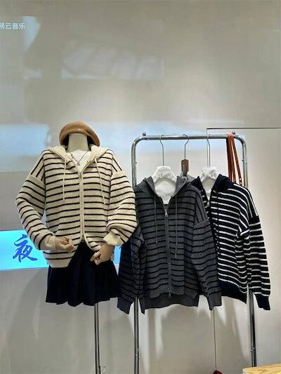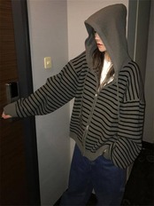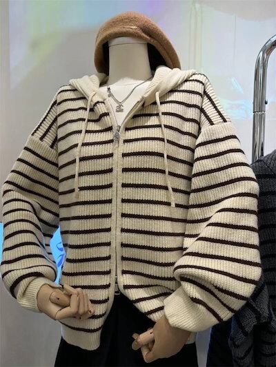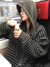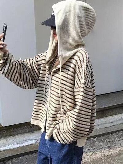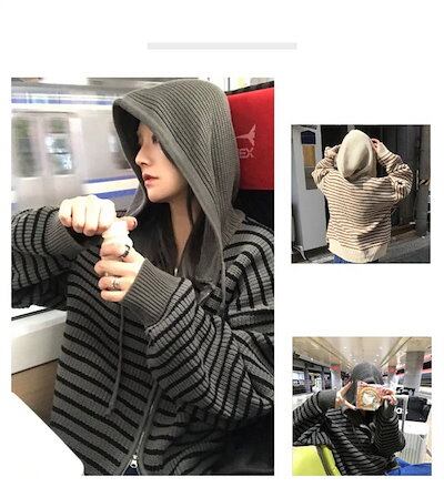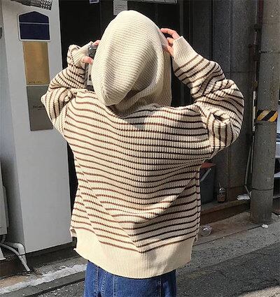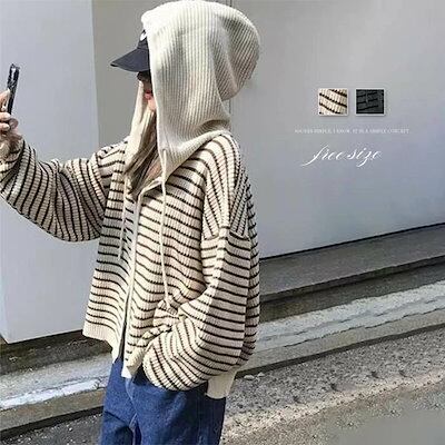 パーカー レディース ニット ボーダー カーディガン 配色 おしゃれ 春 長袖 トレーナー レディース 韓国 スウェット カットソー レディース 秋 冬 春 可愛い 大きいサイズ ゆったり トップス