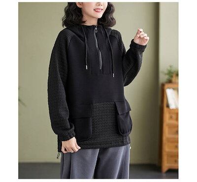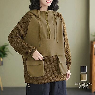 パーカー レディース ドッキング 秋 冬 コットン 無地 おしゃれ 春 長袖 トレーナー スウェット トップス プルオーバー レディースパーカー 長袖トップス レディーススウェット 春秋トップス 秋冬