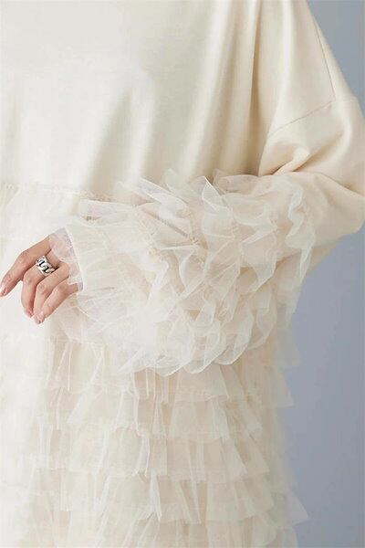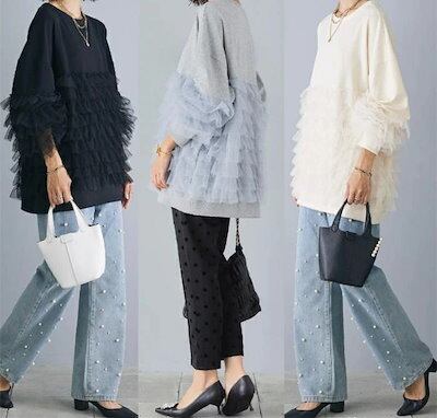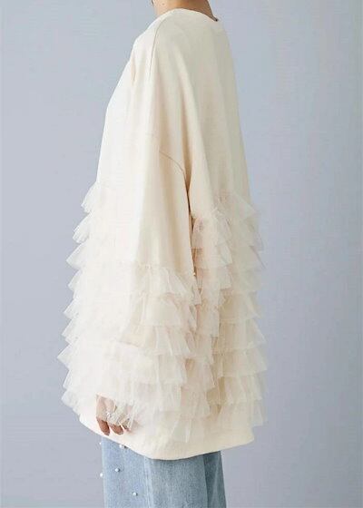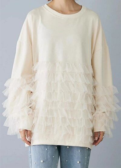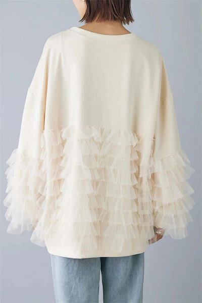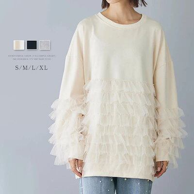 スウェット レディース コットン 長袖 秋冬 チュール 切り替え ブラウス 異素材 暖かい レディース 大きいサイズ 秋 冬 きれいめ プルオーバー カットソー トップス リラックス シンプル カジ
