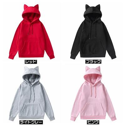 パーカー レディース プルオーバーパーカー フード付き 長袖 ねこみみ 猫耳 トップス 微起毛 カジュアル かわいい おしゃれ