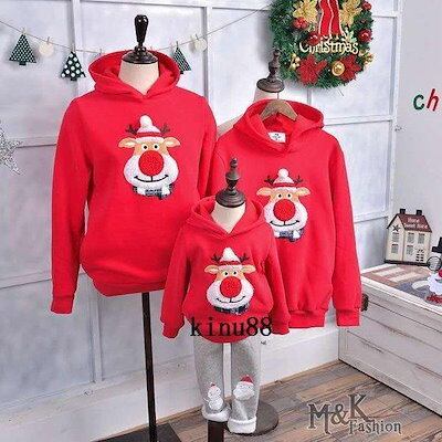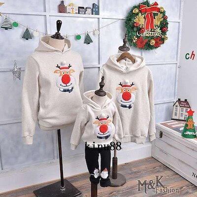 長袖 厚手裏起毛 クリスマス 衣装 トレーナー スウェット 親子ペア 家族お揃い トップス ベビー服 ベビー メンズ レディース キッズ 子供ママパパ