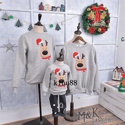厚手裏起毛 クリスマス 衣装 トレーナー スウェット 親子ペア 家族お揃い トップス ベビー服 ベビー メンズ レディース キッズ 子供ママパパ