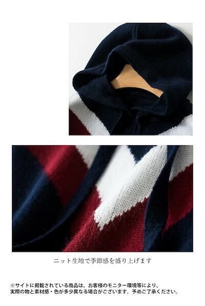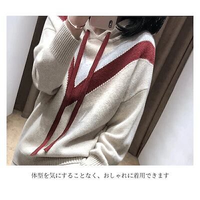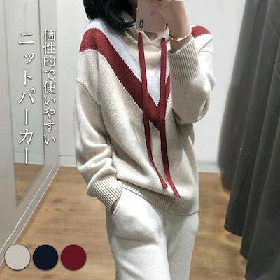 【ニットパーカー レディース】パーカー フード付き プルパーカー 秋パーカー 秋物 カラーブロック 長袖 ニットトップス プルオーバー 大きいサイズ 春秋 トップス 柔らかい ゆったり 体型カバー 定