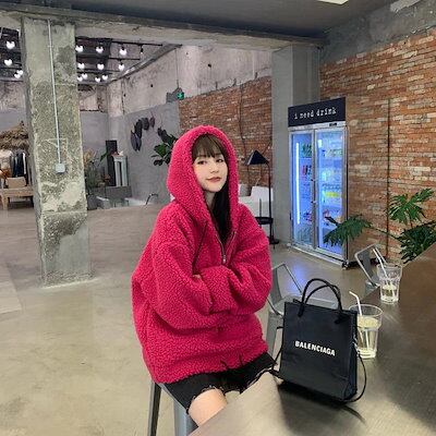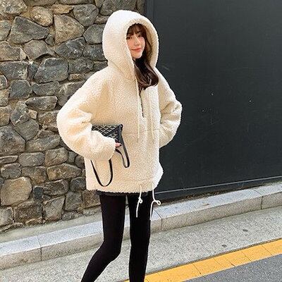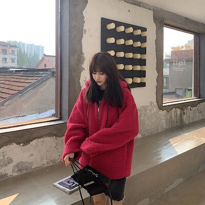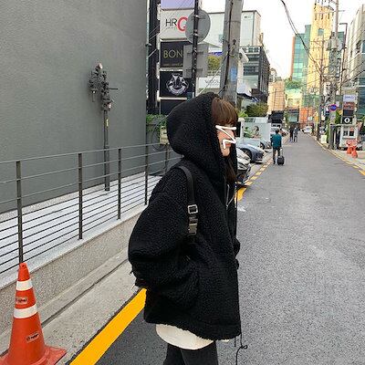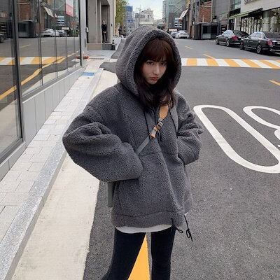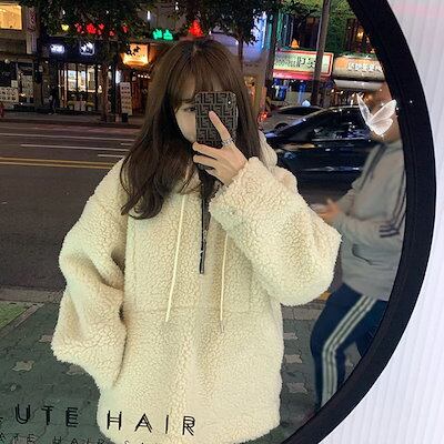 Tシャツカットソー ラムズウール アウター レディース 新作 スウェット裏起毛パーカー 厚手 カップルトップス スウェット
