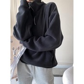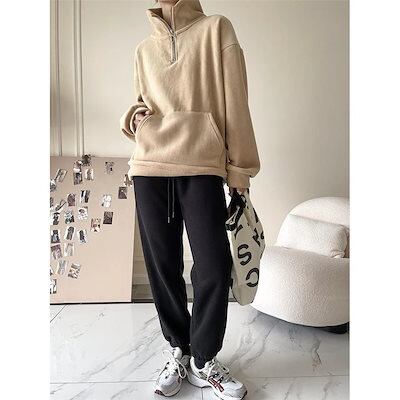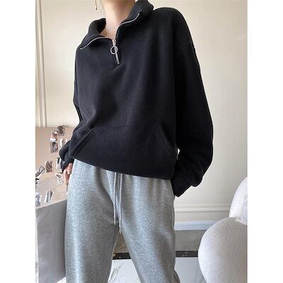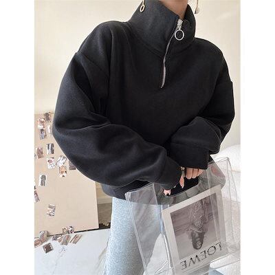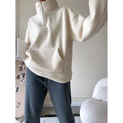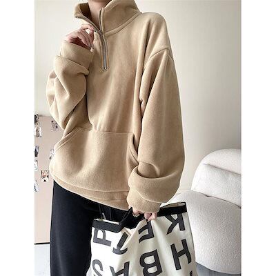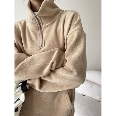 トレーナー レディース 裏起毛 トップス ハイネック 長袖 無地 ジッパー パーカー カジュアル ゆったり シンプル 韓国風 かっこいい ファションマウンテンパーカー