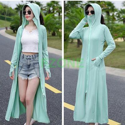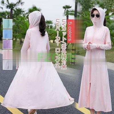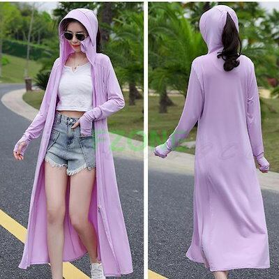 UVパーカー レディース 無地 長袖 ロング丈 アウター カジュアル UVカット 薄手 フード付き 紫外線対策 通勤 春夏 きれいめ おしゃれ