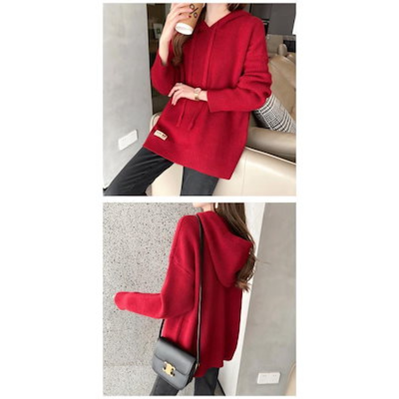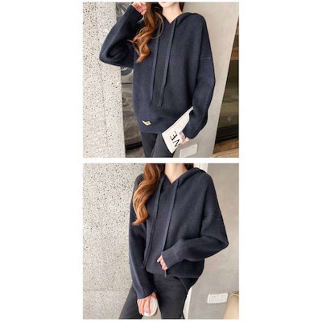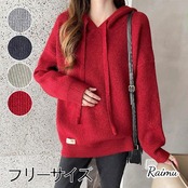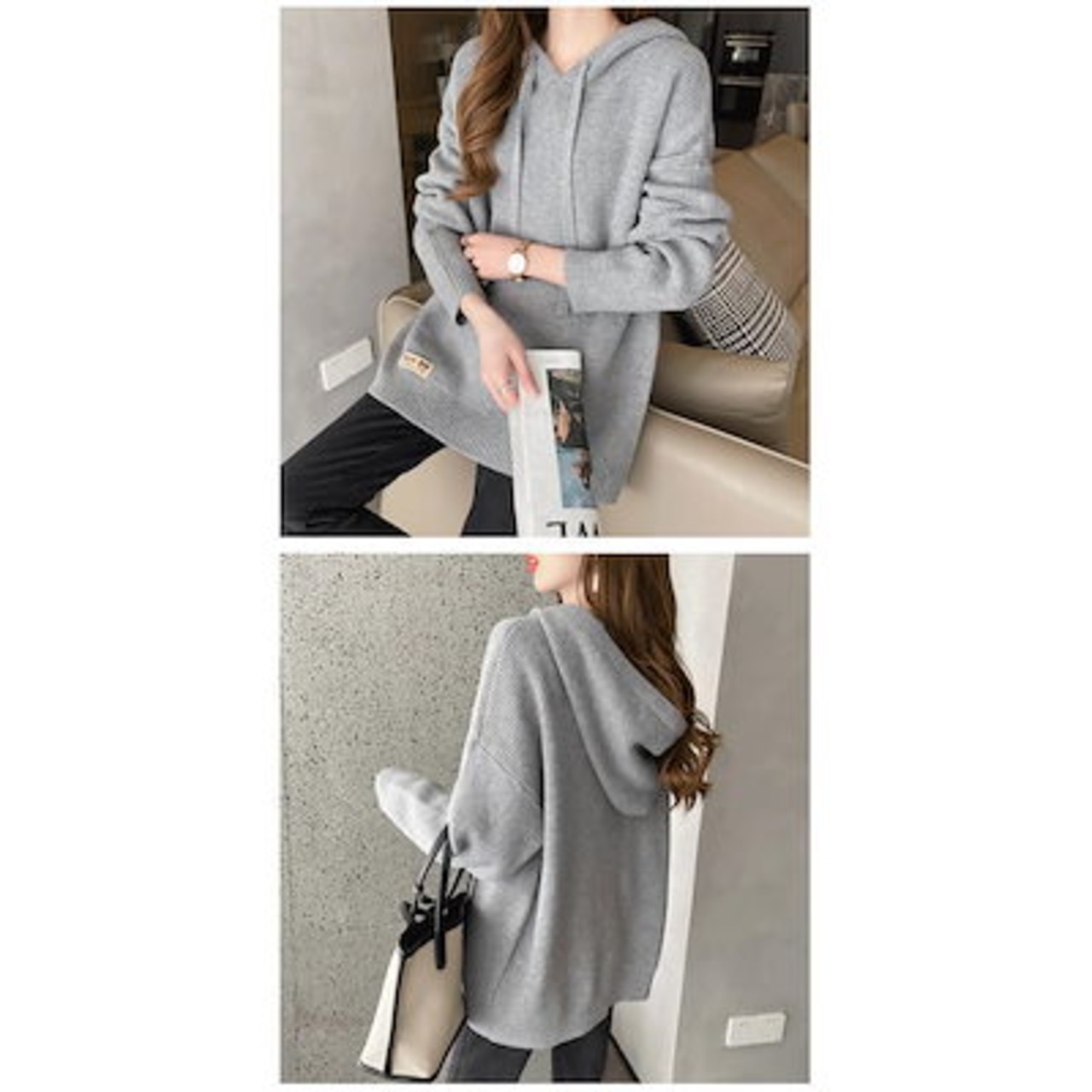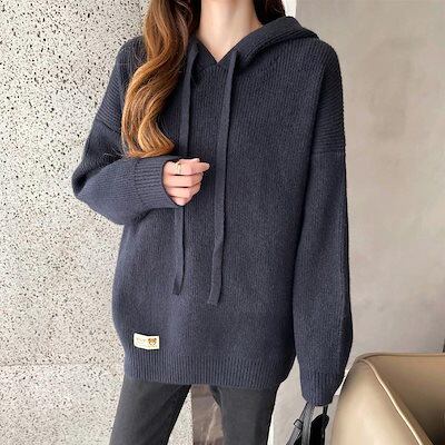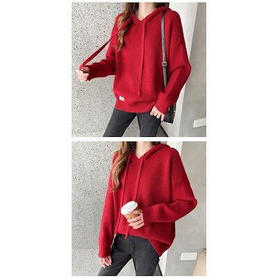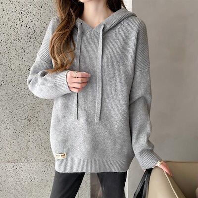 ニットトップス レディース セーターパーカー タイドシャツ ゆったり フード付き プルオーバー 長袖 無地 オシャレ デイリー 20代30代 40代