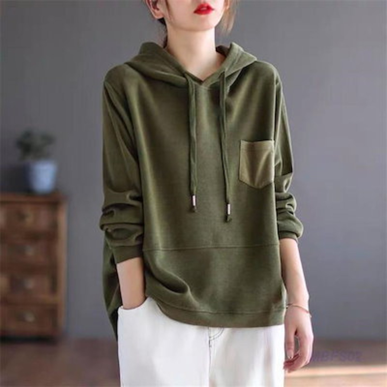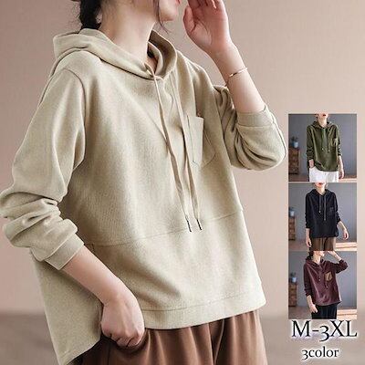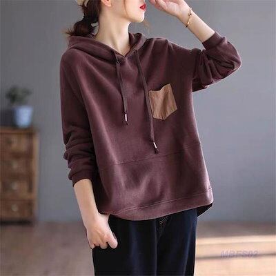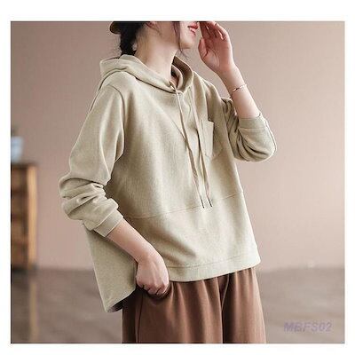 パーカー レディース 長袖パーカー フード付き トップス プルオーバー 無地 カジュアル シンプル ゆったり 春秋 母の日 プレゼント フェミニン
