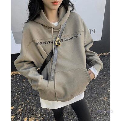 パーカー レディース 長袖パーカー フード付き トップス プルオーバー 英文字 無地 カジュアル アメカジ シンプル ゆったり 春秋 おしゃれ 部屋着