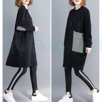 パーカー レディース 長袖 Tシャツ ロング丈 トレーナー トップス 秋物 ゆる 体型カバー カジュアル