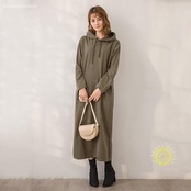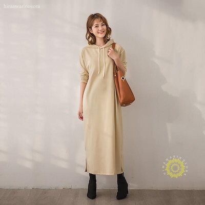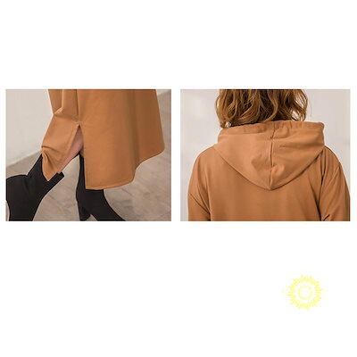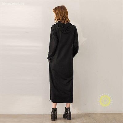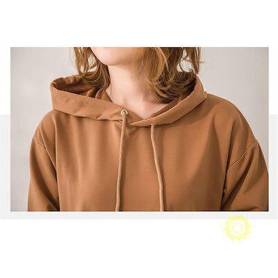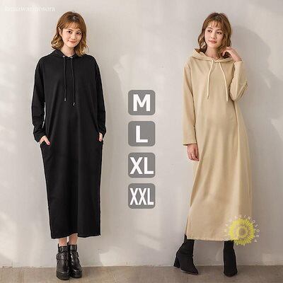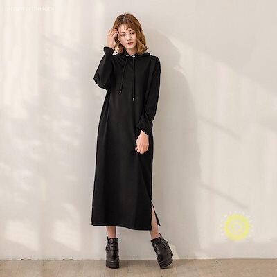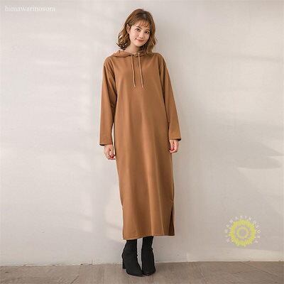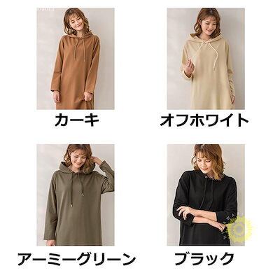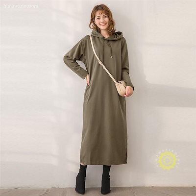 ワンピース 春コーデ レディース 長袖 ライトスウェット パーカー ロング丈 ポケット フード付き 無地 楽チン 体型カバー カジュアル プルオーバー 30代