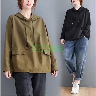 パーカー Tシャツ レディース ブラウス 春秋 フード付き 長袖 シャツブラウス トップス 着心地 切り替え 大人 ゆったり 体型カバー 着痩せ カジュアル 着回し