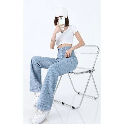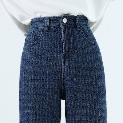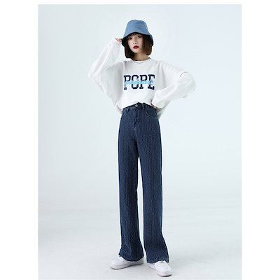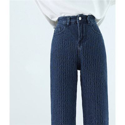 デニムパンツレディースデニムワイドパンツジーンズパンツスキニー伸びるゆったりトレンドハイウエスト裏起毛暖かい裏ボアパギンス