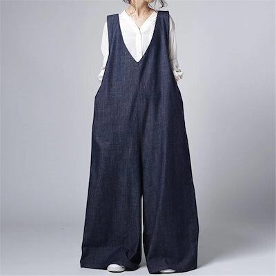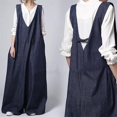 [2024限定モデル]サロペットオーバーオールオールインワン無地ワイドパンツレディースキャミガウチョ
