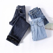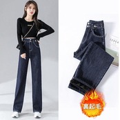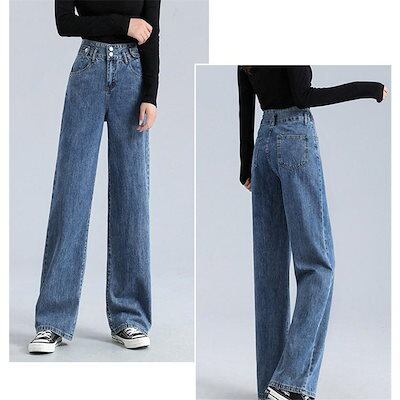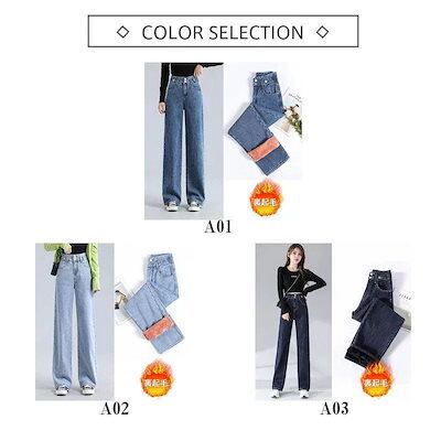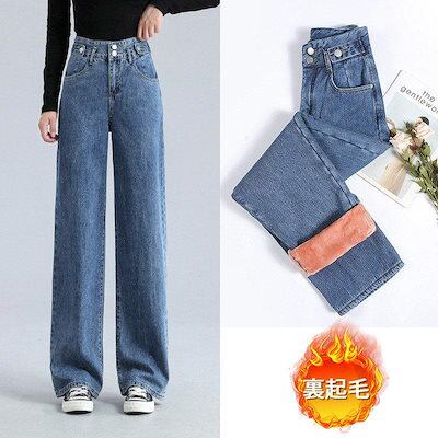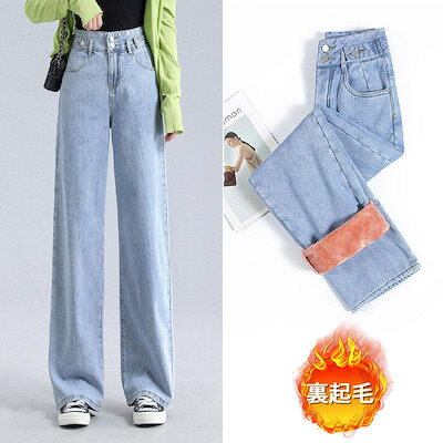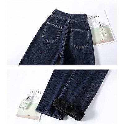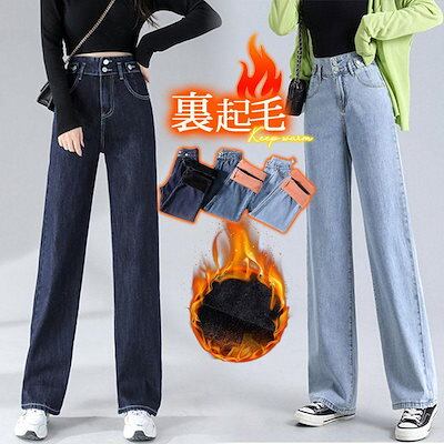 目玉商品超人気 デニムパンツ レディース ワイドパンツ ボトムス 裏起毛 アウトドア 暖い 脚長 保温 防風 オシャレ カジュアル 秋冬-24