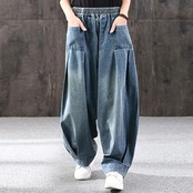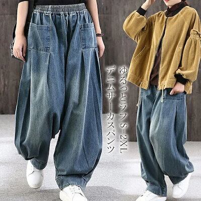 春新作 レディース パンツ デニムパンツ デニム ワイドパンツ ロングパンツ バルーンパンツ 綿ゆったり 大きいサイズ 体型カバー オシャレ 無地 脚長効果 大人 カジュアル 可愛い 春夏 女性 人
