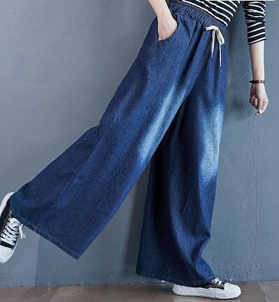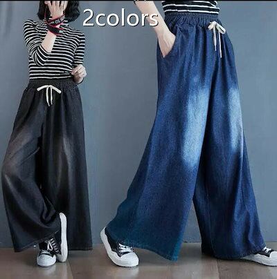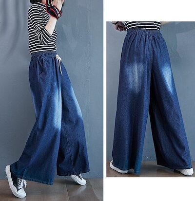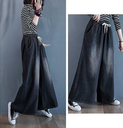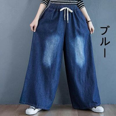 パンツワイドパンツスカーチョデニムバギーパンツガウチョパンツフレアパンツ体型カバー春夏秋ロングレディースボトムスワイドゆったりカジュアル大きいサイズ
