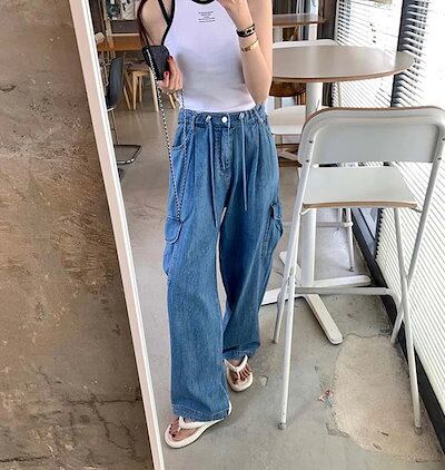 カーゴパンツ レディース 春 秋 夏 ロング丈 ルーズ ズボン ボトムス デニム パンツ ワイドパンツ ワークパンツ チノパンツ 楽 動きやすい カジュアル ゆるっと おしゃれ かわいい