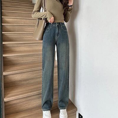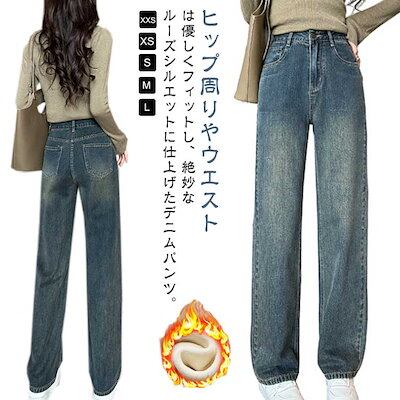 ロング 裏起毛 レディース 2タイプ ボトムス 裏ボアなし ワイドデニム ストレート バギーパンツ ハイウエスト ロングパンツ デニムパンツ 大きいサイズ 体型カバー 長ズボン ジーンズ 楽チン 極暖