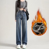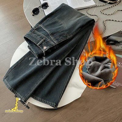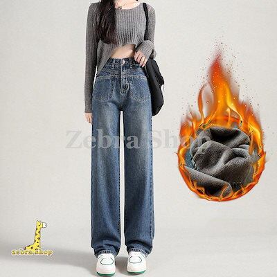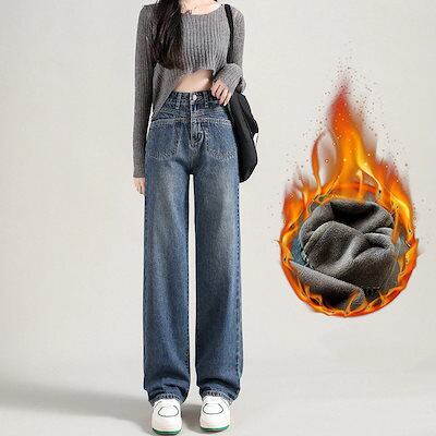 ワイドパンツレディースワイドデニム裏起毛デニムパンツレディース防寒ジーンズデニムパンツ大きいオシャレジーパン体型カバー