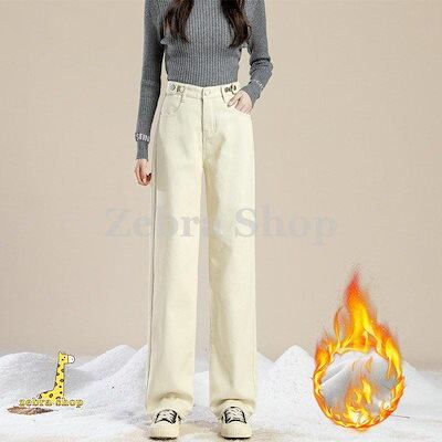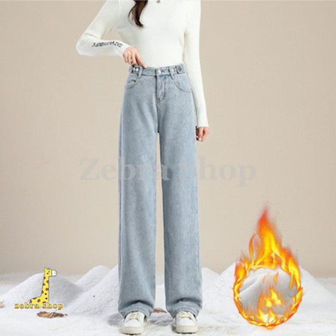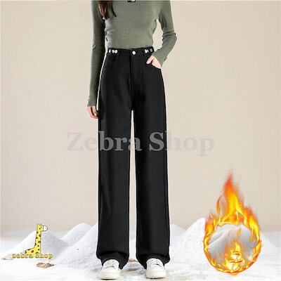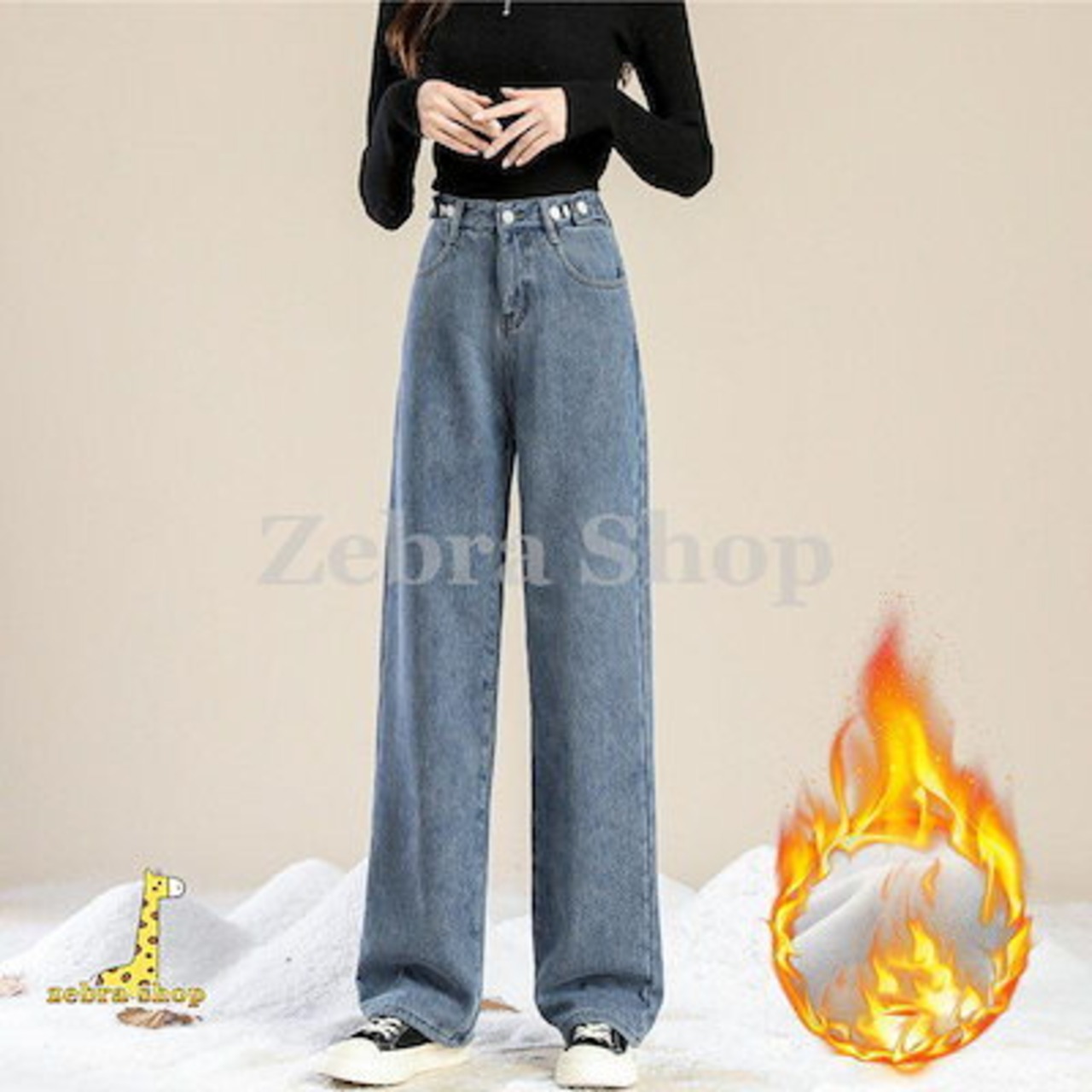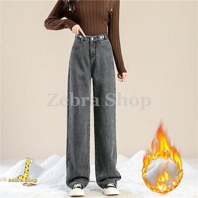 ワイドパンツレディースワイドデニム裏起毛デニムパンツレディース防寒ジーンズデニムパンツ大きいオシャレジーパン