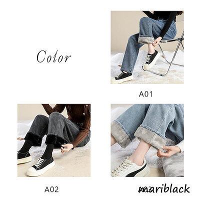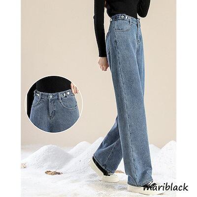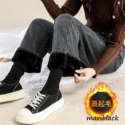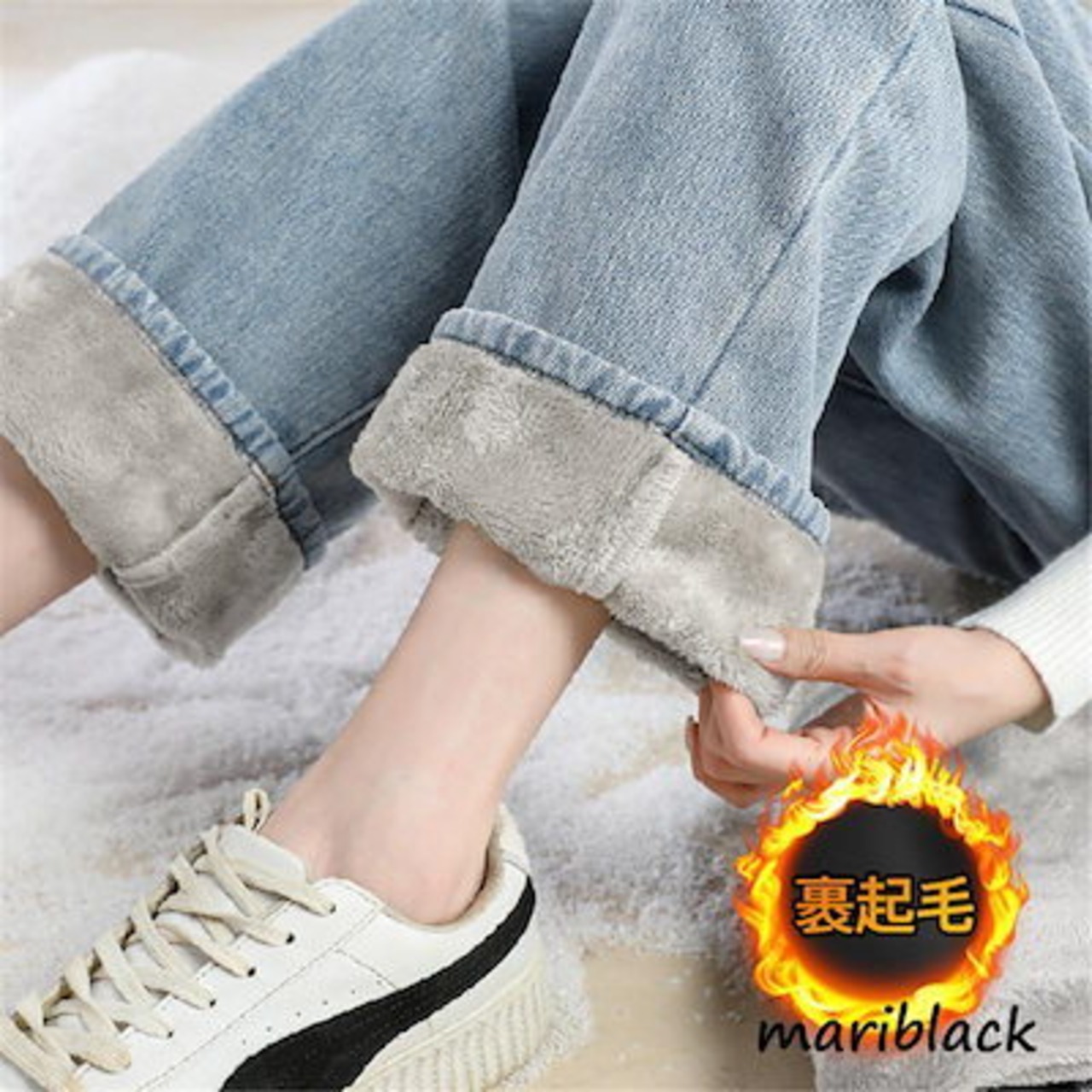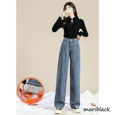デニムパンツレディースワイドパンツ裏起毛裏ボアジーンズ厚ハイウエスト秋冬ジーパン保温防寒暖かいロングパンツゆったり通勤