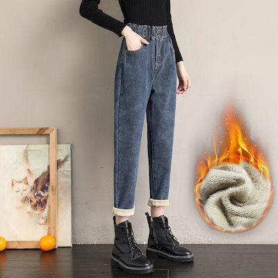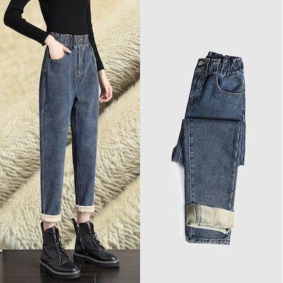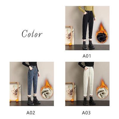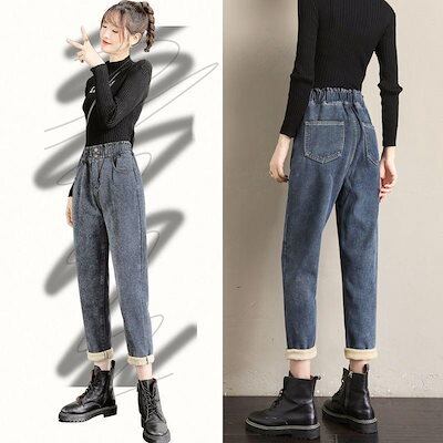 デニムパンツ レディース ジーンズ 裏起毛 裏ボア ワイドパンツ 厚手 ハイウエスト ゴム 秋冬
