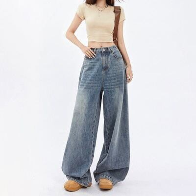 激?れ人気商品 脚長効果!デニムパンツ かっこいい!デニムパンツ レトロルーズワイドレッグジーンズレディースニューハイウエストドレープストレートジーンズパンツ30%までに制限
