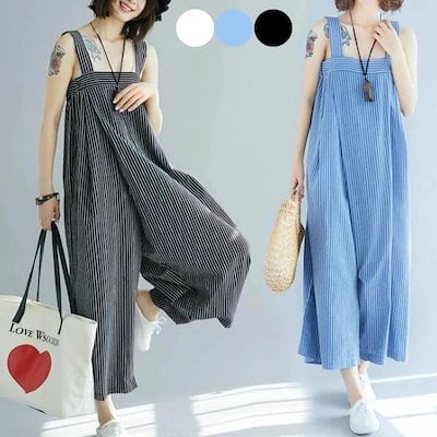 サロペット オールインワン スカーチョ ワイドパンツ ロングパンツ ワンピース ストライプ ゆるサロペット レディース ボトムス ゆったり 楽ちん トレンド 体型カバー パンツ 春夏