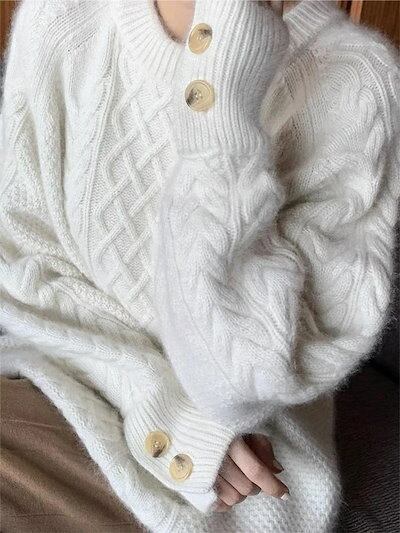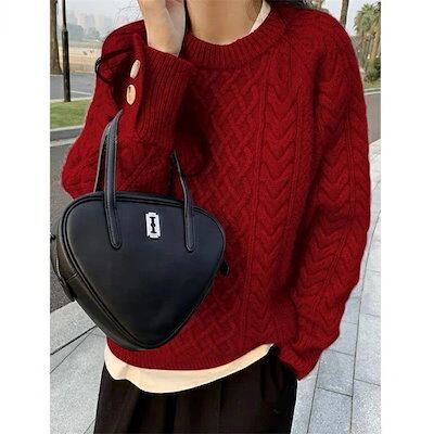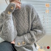 ニット レディース トップス ニットセーター セーター ニットソー カットソー レディースニット 長袖 クルーネック 飾りボタン ボタン付き 伸縮性 体型カバー 着痩せ 細見え 無地 シンプル ゆった