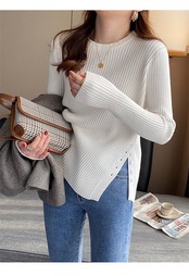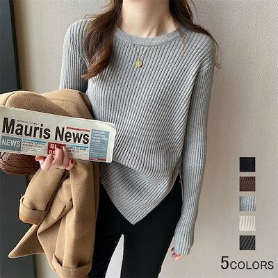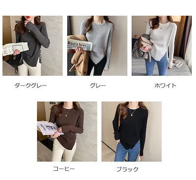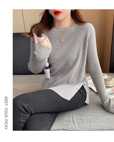 ニットソー ニット レディース ベーシック 伸縮性 シンプル ボタン飾り シンプル ニット カットソー セーター 通勤 ホワイト 無地 インナー ニットセーター タイト ック インナーニッ