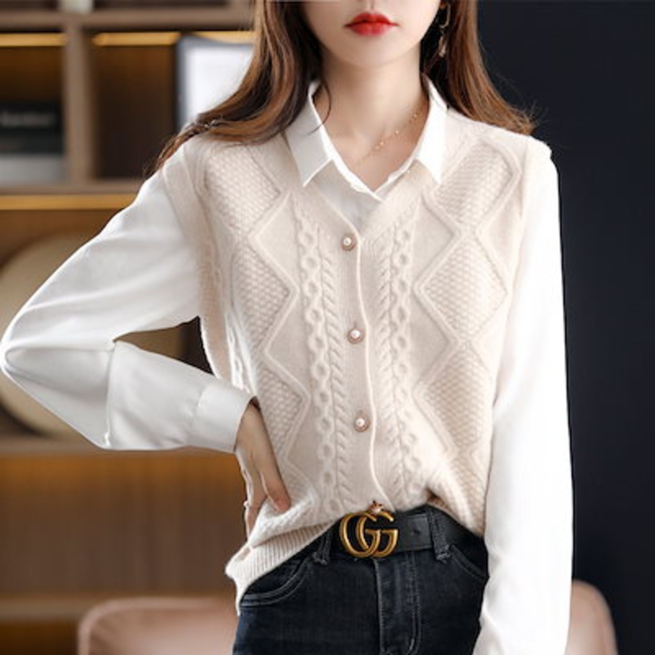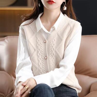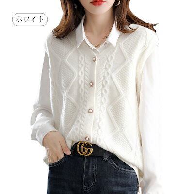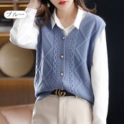 きれいめ ノースリーブ 可愛い ボタン留め Vルネック 重ね着 ニットトップス カーディガン セーター ドルマン ベスト ゆったり レディース ニット セーター 前開け レイヤード ドルマンスリ