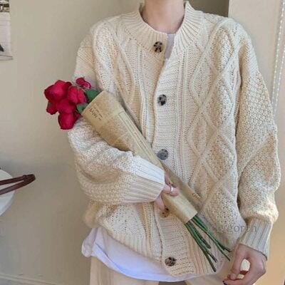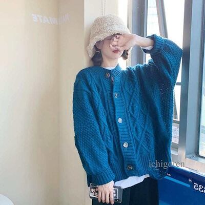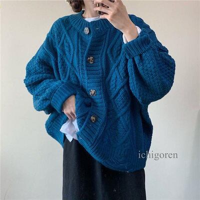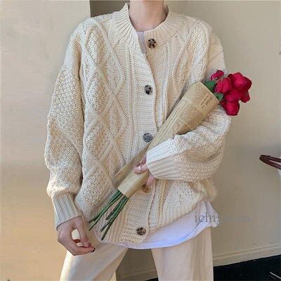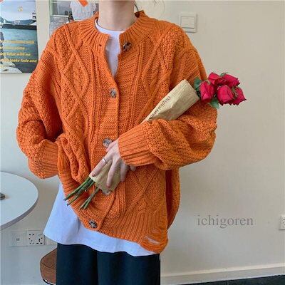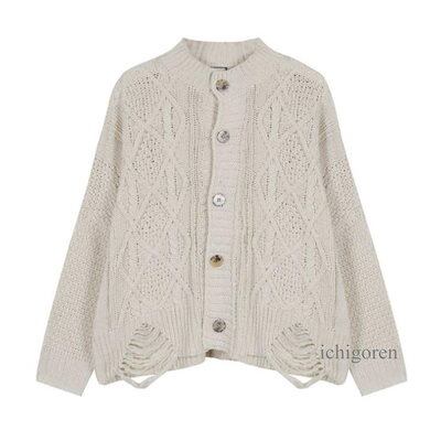 人気なリブニットクラッシュ加工 ケーブルニット カーデ セーター カーディガン トップス アウター レディース ダメージ カジュアル ニット ボタン カーデガン