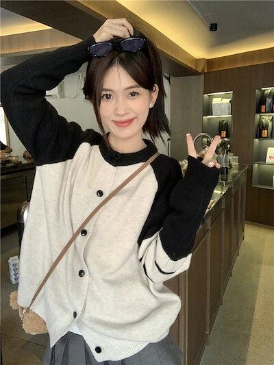 トップス ニット セーター カーディガン 長袖 ラグラン ボタン ラウンドネック ゆったり 丈長め かわいい おしゃれ カジュアル 秋 韓国ファッション レディース お出かけ30%までに制限