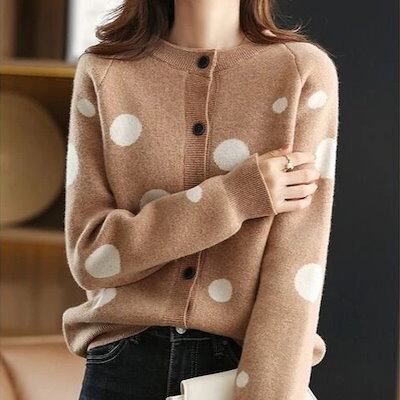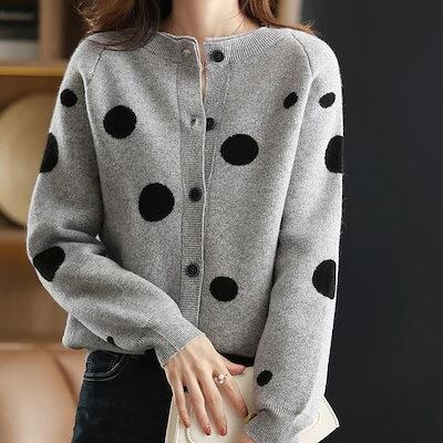 品質のいい 大人カジュアル ボタン ドット柄 カーディガン レディース