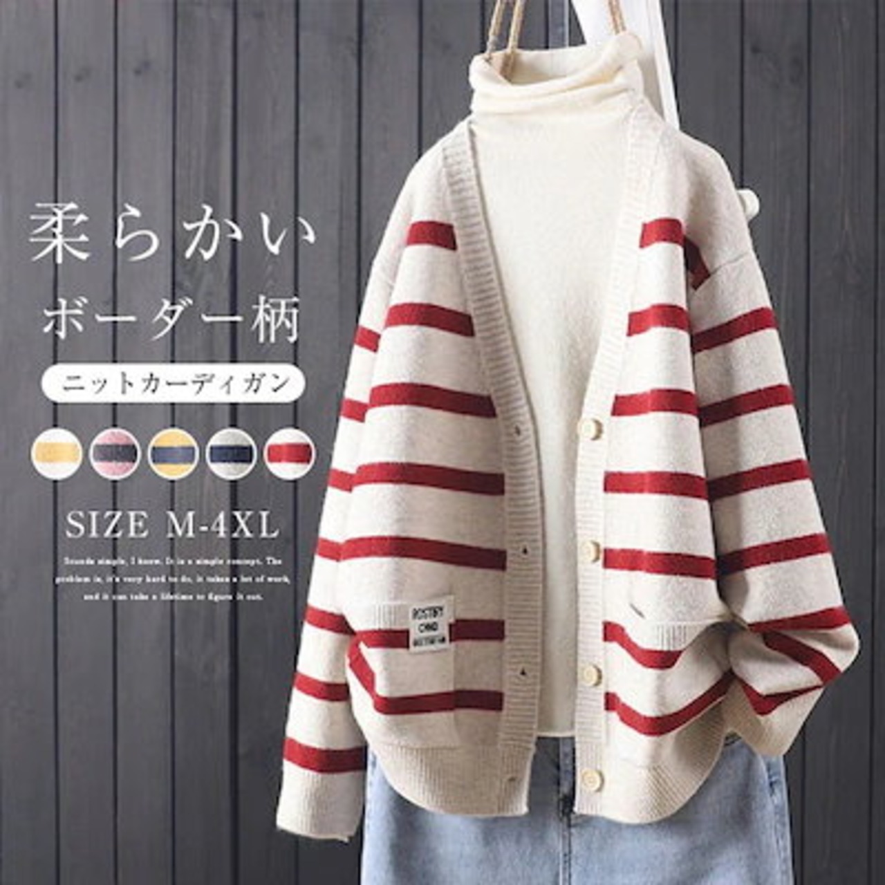 ニットカーディガン ニットVネック ボーダー柄 羽織 春 秋 冬 長袖 秋服 レディース あったかい セーター トップス 前開き ボタン付き アウター 厚手 体型カバー 暖かい もこもこ 可愛い オー