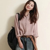 シャツ 春夏秋 綿麻 レディース 長袖 トップス 無地 折り襟 ボタン留め おしゃれ 前開き ゆった30%までに制限