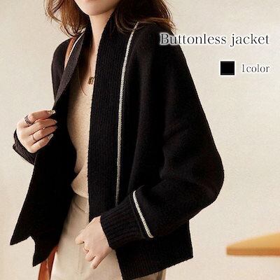 カーディガン レディース ボタンレスジャケット ニット 生地 きれいめ ゆったり 秋 ブラック 暖かい ジャケット Vネック 厚手 ケーブル ロング あったか ショート丈 丸首 人気 ベージュ オフィ